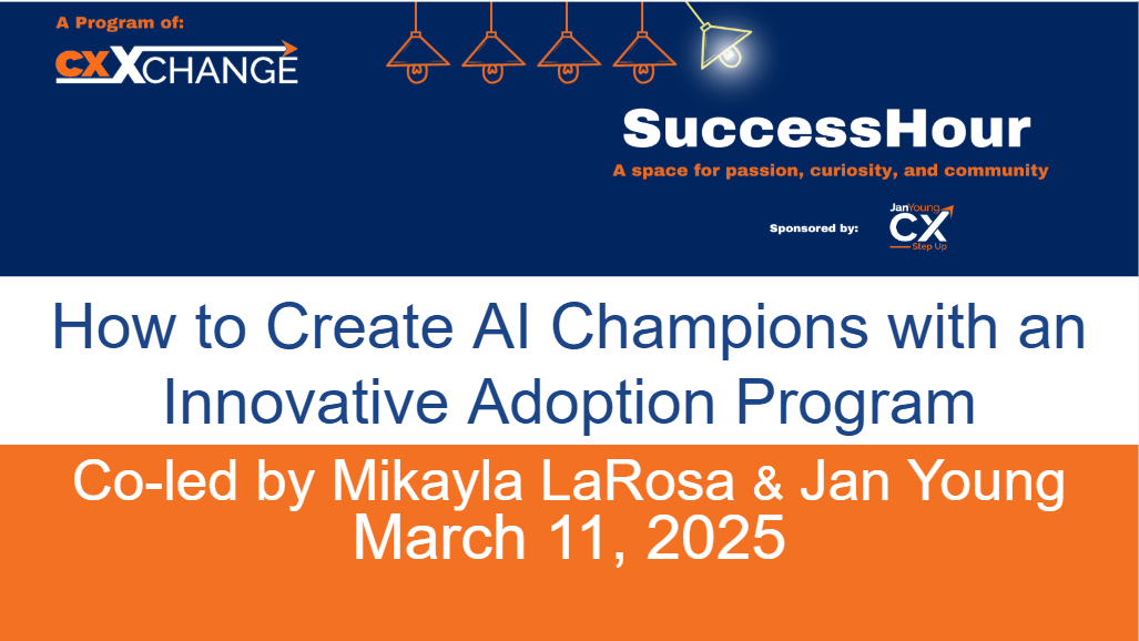 Success Hour- How to Create AI Champions with an Innovative Adoption Program Wednesday, March 11, 2026 12:00 PM 1:00 PM Google Calendar ICS